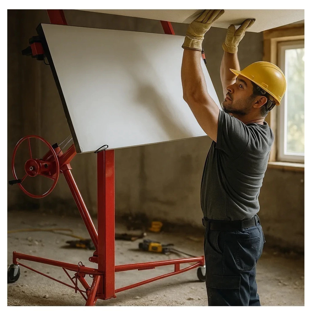 Haz cada instalación más rápida, segura y sin esfuerzo. Este elevador de paneles combina fuerza, estabilidad y movilidad para que una sola persona pueda levantar placas en techos y paredes. Su diseño robusto de acero, ruedas bloqueables y brazo ajustable lo convierten en la herramienta ideal para trabajos de construcción y remodelación.