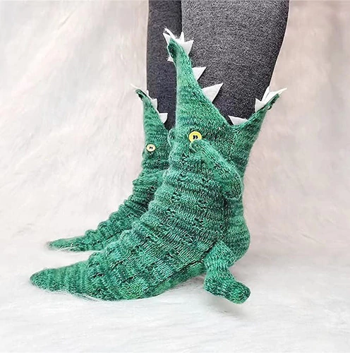 . Calcetines divertidos con patrón de animales: diseñados para imitar la piel de cocodrilos, ojos elevados, bolas de nariz, una red abierta y brazos y piernas. El detalle fino ofrece ojos de botón y dientes cosidos individualmente listos para comer tu pierna. Estos divertidos y bonitos calcetines son perfectos para este invierno.