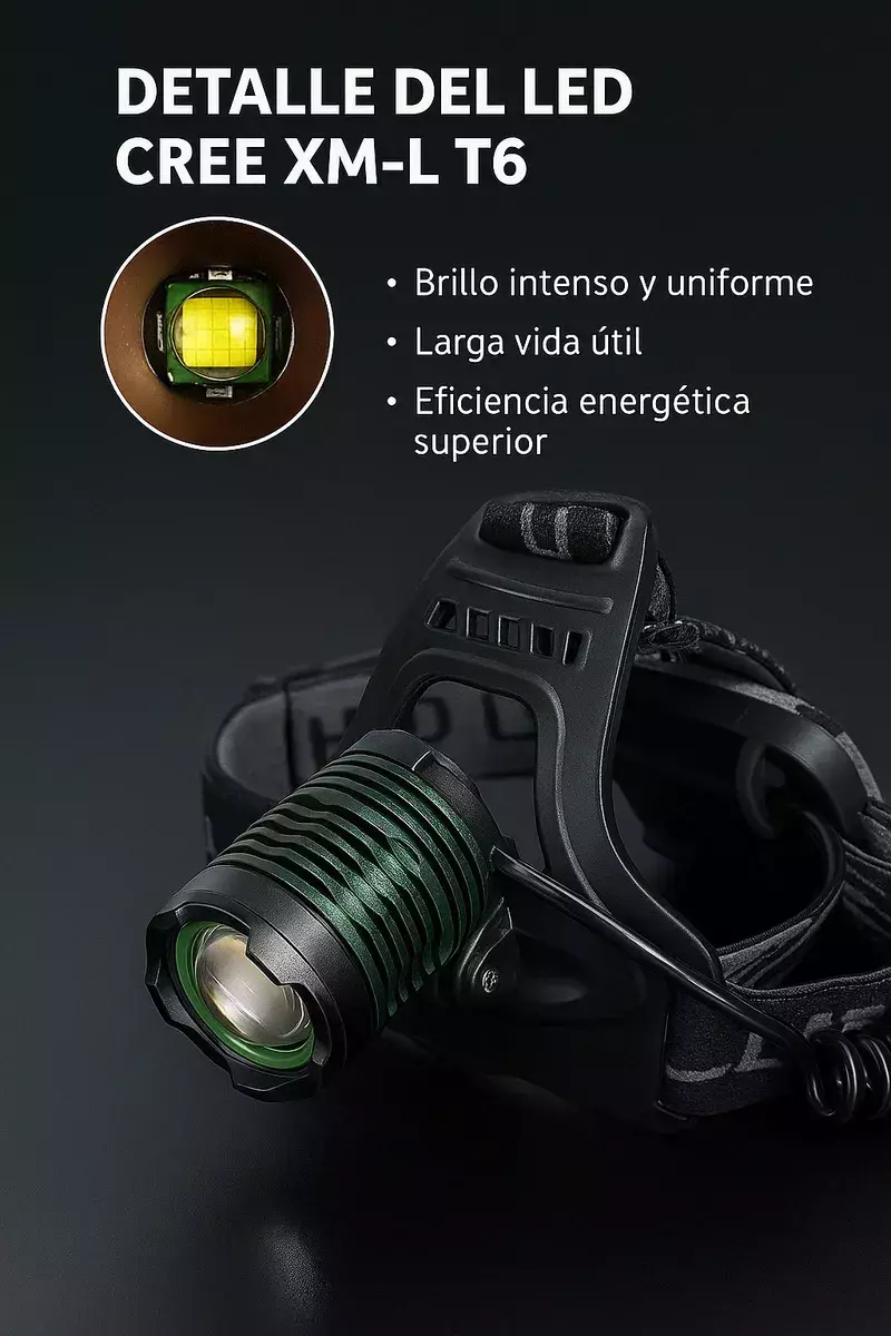 Esta linterna de cabeza es la compañera perfecta para tus aventuras al aire libre. Con un robusto diseño en aleación de aluminio y caucho, es duradera, resistente al calor e impermeable. Su cabezal ajustable te permite dirigir la luz con precisión, ideal para caminatas, camping, pesca y deportes en exteriores.
