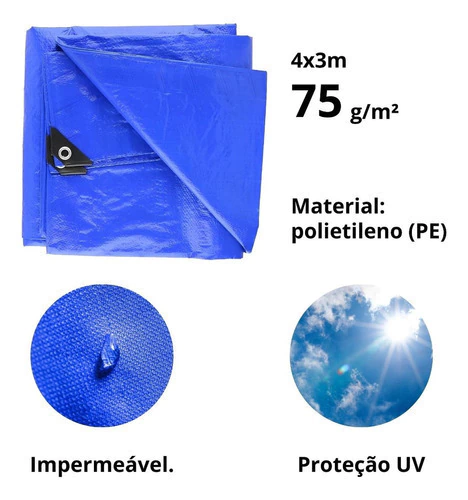 Lona Carpa Impermeable 3x4 Metros Lona Con Ojetillos Auto