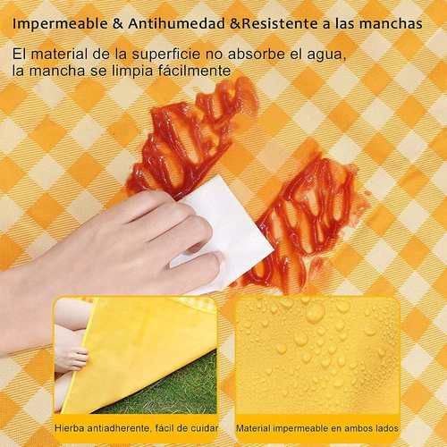 . La manta para picnic está hecha de Tela PVC Impermeable de alta calidad, que es suave, fiable, cómodo y muy fácil de limpiar. Simplemente sacuda la arena de la playa, la hierba, la suciedad o los residuos y luego limpie fácilmente cualquier barro o mancha con las manos usando un paño húmedo.