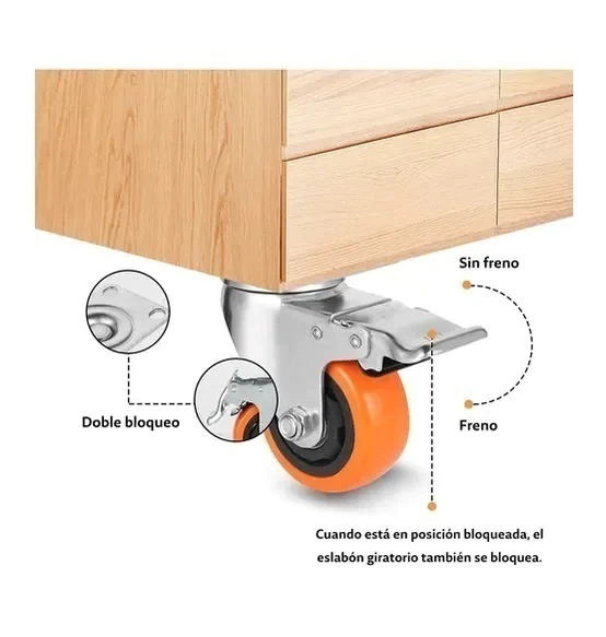 Agrega movilidad confiable y silenciosa con esta rueda giratoria industrial de 5 pulgadas. Su estructura en acero y PVC ofrece máxima resistencia, giro de 360° y freno doble para mayor seguridad. No raya superficies delicadas como madera o vinilo, siendo ideal para carritos, muebles, estantes y equipos que requieren desplazamiento firme y seguro.