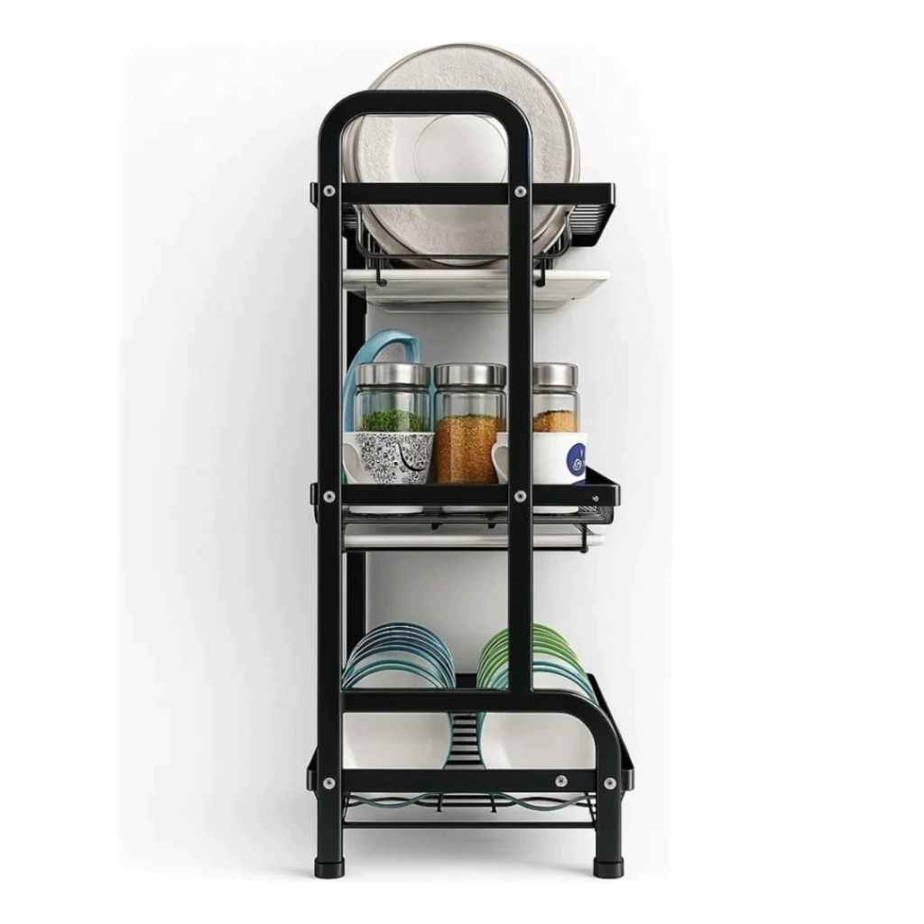 Optimiza tu cocina con este escurridor de platos de 3 niveles. Su diseño moderno y resistente aprovecha el espacio vertical, manteniendo todo organizado: platos, tazas, utensilios y hasta tablas de cortar. Ideal para cocinas grandes o pequeñas, combina practicidad y estilo, garantizando orden y comodidad en tu día a día.