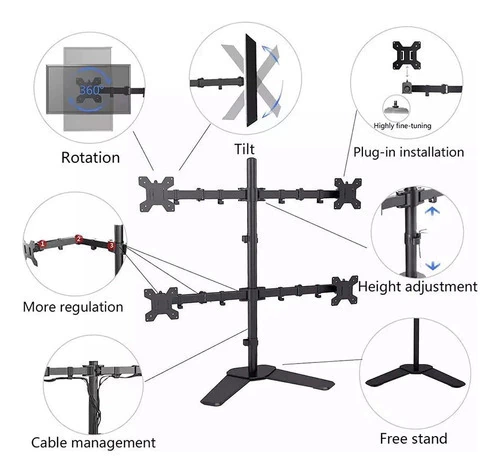 . Con un diseño elegante y funcional, nuestro soporte no solo optimiza el espacio, sino que también mejora la estética de su entorno. Imagine la comodidad de tener múltiples pantallas al alcance de su mano, proporcionando una visión panorámica que impulsa su capacidad de realizar tareas múltiples de manera eficiente.