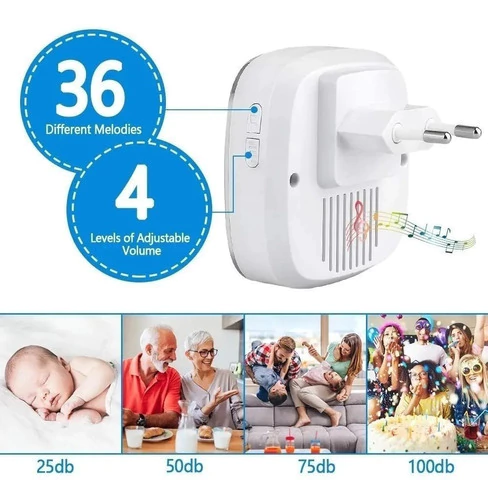 . 36 Melodía Musical con Volumen Ajustable: 36 tipos de selección de melodía con 4 niveles de volumen ajustable de 0db a 100db. Elija y establezca fácilmente sus tonos favoritos.