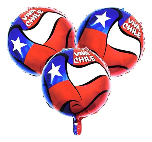 X3 Globo Fiestas Patrias Globos Metalicos Redondo Bandera Chilena